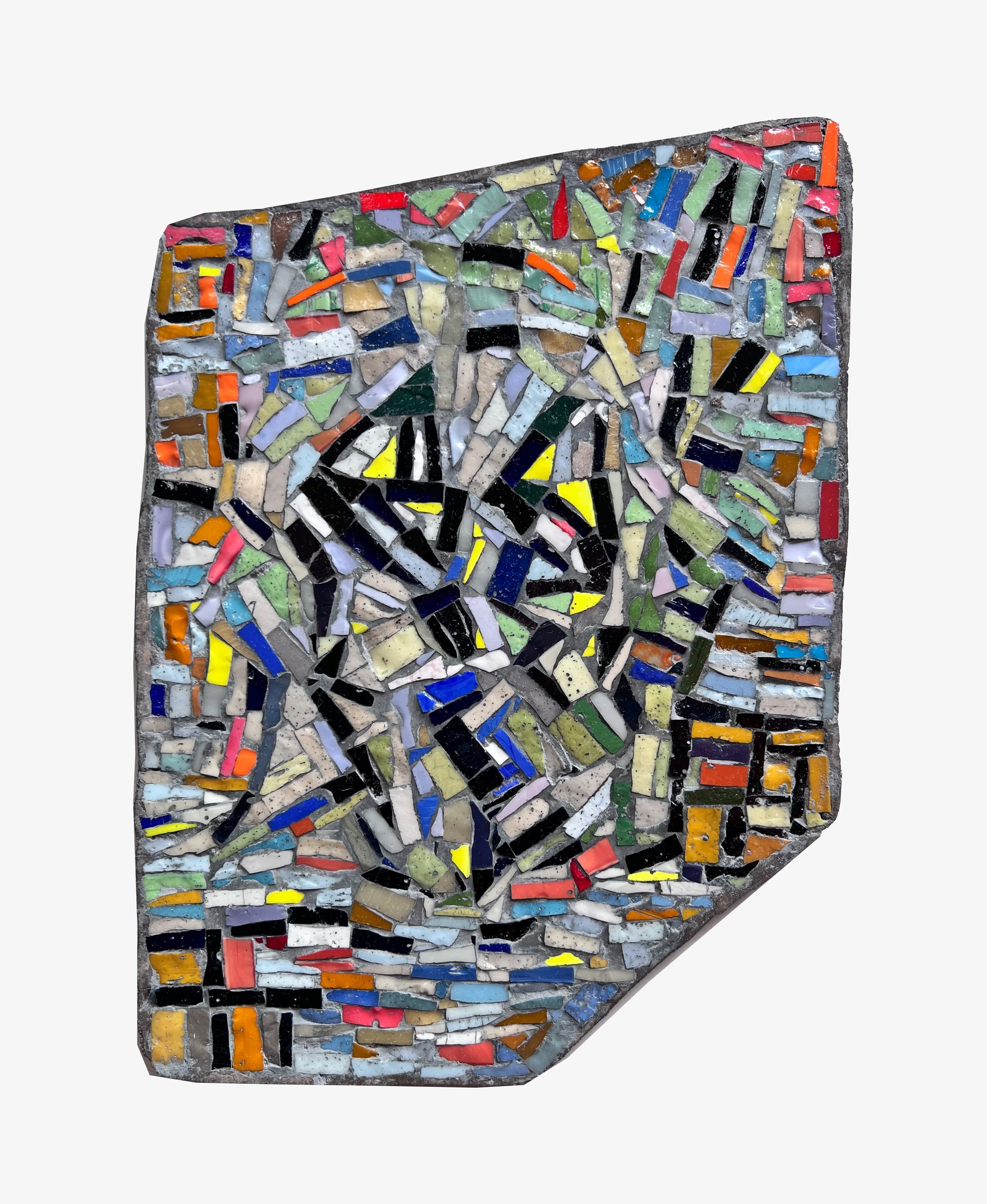 GLITCH fragments the image of a face into a restless field of fractured tesserae, where lines of color stutter and collide like broken signals. The composition resists clarity, instead capturing the moment when perception falters and identity splinters into noise. Vibrant shards of red, blue, yellow, and green pulse against dark interruptions, evoking the dissonance of memory, technology, and the self.